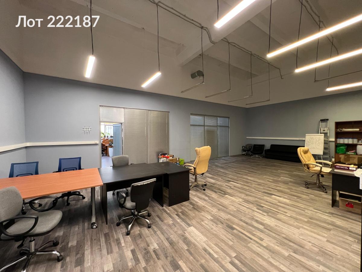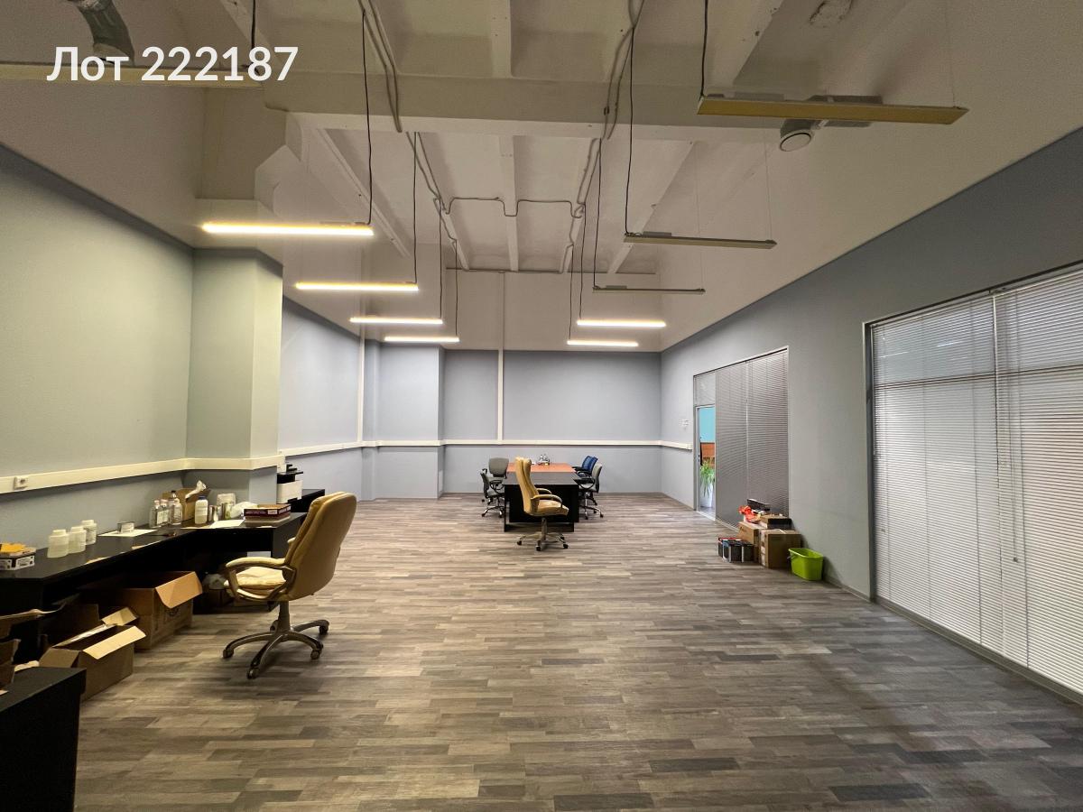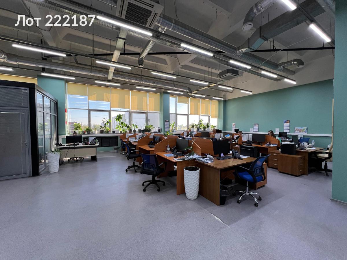 Лот № 222187 Аренда офисного помещения площадью 258,4 м² в бизнес-центре «Ультрамарин», расположенном в десяти минутах ходьбы от станции метро «Ботанический сад».Помещение общей площадью 258,4 м², включающее три зоны: 166,1 м², 79,1 м² и 12,7 м² (металлический каркас со стеклянными вставками), организовано в формате open-space. Стены облицованы гипсокартоном, частично оклеены обоями и окрашены водоэмульсионной краской в оттенки зелёного и серо-голубого, а также декорированы штукатуркой «Короед» бежевого цвета. Межкомнатная перегородка изготовлена частично из стекла в ПВХ-профиле. Пол покрыт линолеумом, а потолок представляет собой железобетонное перекрытие, окрашенное белой водоэмульсионной краской; высота потолка составляет 5 метров.